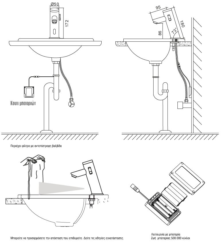 - Η ροή ενεργοποιείται όταν πλησιάζουν χέρια, αλλιώς σταματά αυτόματα.