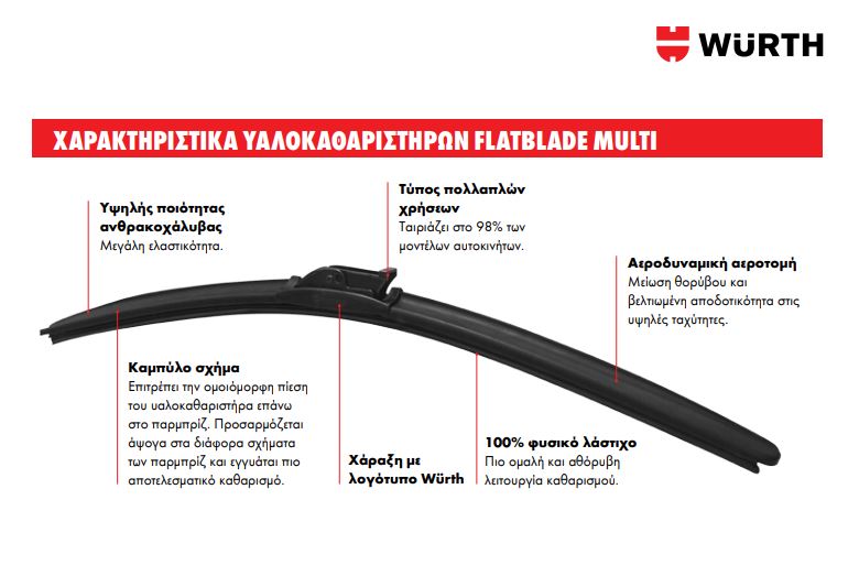 WURTH - ΥΑΛΟΚΑΘΑΡΙΣΤΗΡΑΣ FLATBLADE MULTI 1ΤΜΧ 675 mm / 27“ (0848020675)
