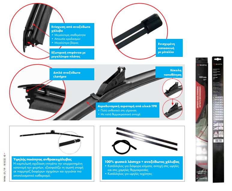 - Τεχνολογία Curvature Bending και συμμετρική σχεδίαση σπόιλερ για βέλτιστη επαφή με το παρμπρίζ σε υψηλές ταχύτητες.