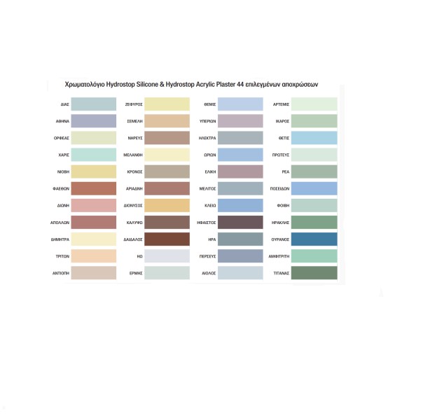 Χρώμα Λευκό και 44 επιλεγμένες απο χρώσεις βάσει χρωματολογίου.