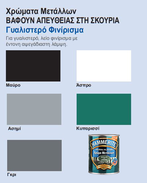 Το Hammerite είναι ένα ειδικά μελετημένο χρώμα μετάλλων για εφαρμογή απευθείας στη σκουριά.Λειτουργεί σαν αντισκωριακό αστάρι, υπόστρωμα και τελικό χρώμα.