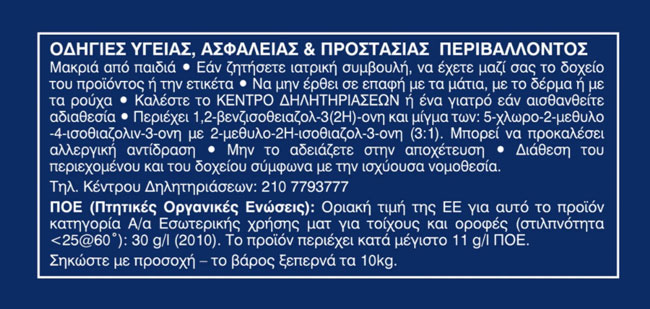 - Περιέχει 1,2-βενζισοθειαζολ-3(2Η)-ονη. Μπορεί να προκαλέσει αλλεργική αντίδραση.