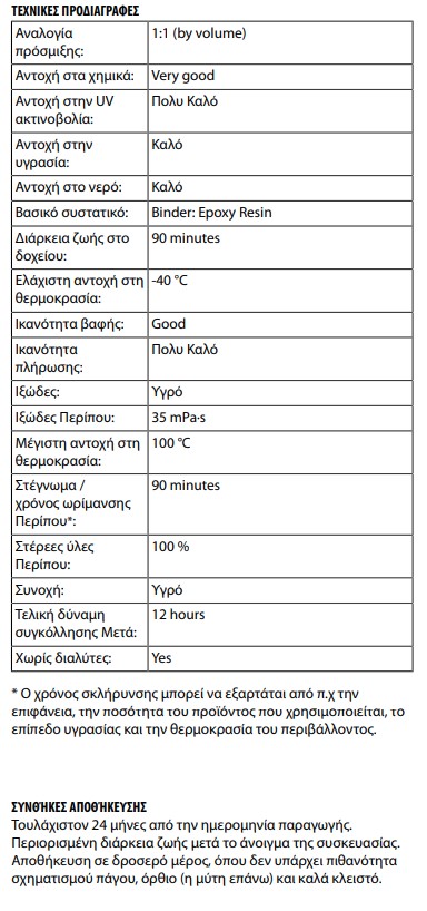 - Χρήση: 1 ml = περίπου 1 cm² σε πάχος φιλμ 1 mm.