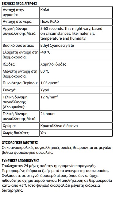 - Κολλάει το δέρμα και τα μάτια μέσα σε λίγα δευτερόλεπτα.