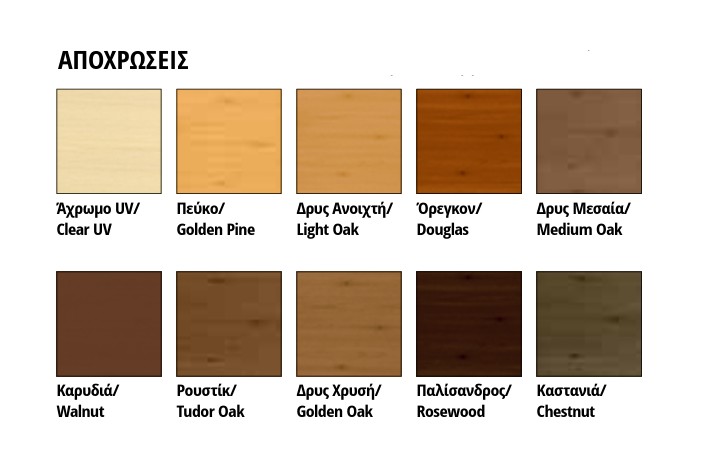 - Αδιαβροχοποιεί, διακοσμεί και προστατεύει το ξύλο.Εξωτερικής – Εσωτερικής χρήσης.
