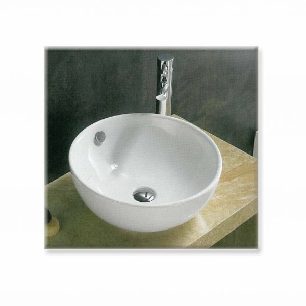 Νιπτήρας πορσελάνης στρογγυλός για τοποθέτηση σε πάγκο με οπή για τοποθέτηση μπαταρίας.