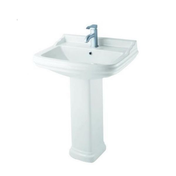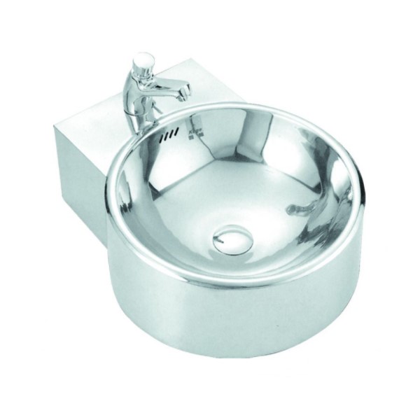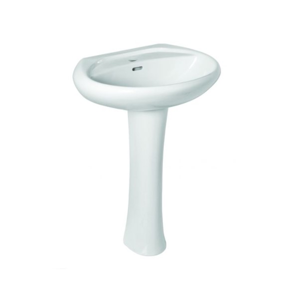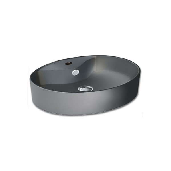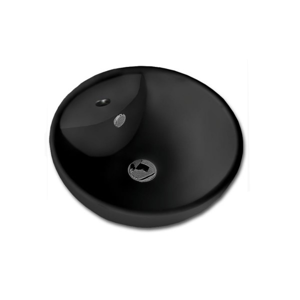 Νιπτήρας πορσελάνης λευκός επικαθήμενος με οπή για τοποθέτηση μπαταρίας στο κέντρο.