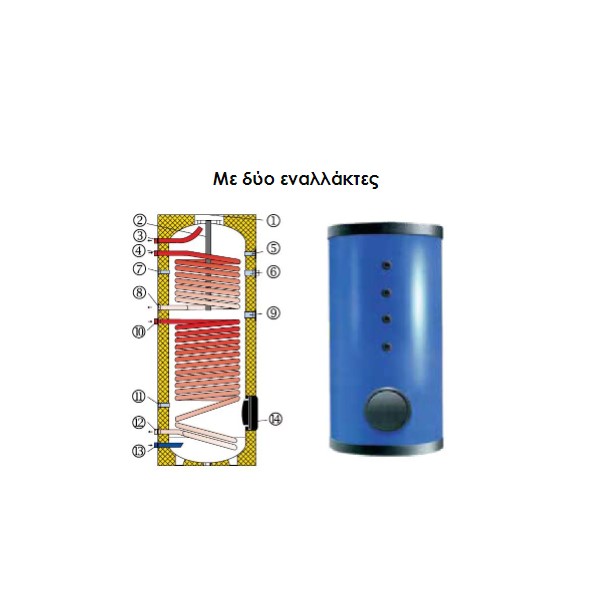 - Εναλλάκτης: μόνιμη σερπαντίνα απο χαλυβδοσωλήνα διατομής 33mm(tubo).