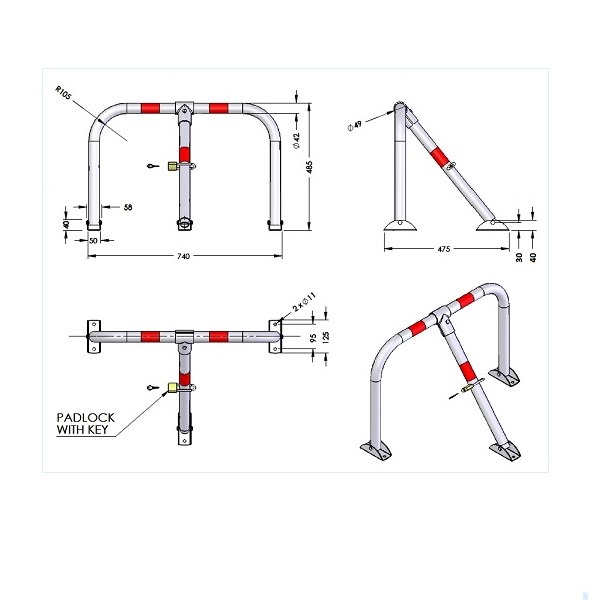Χειροκίνητη μπάρα παρεμπόδισης στάθμευσης τύπου U από σωλήνα Φ42mm με λουκέτο