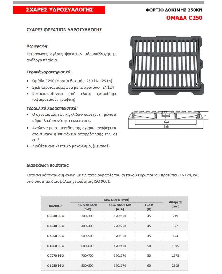 Ομάδα C250 (φορτίο δοκιμής: 250 kΝ – 25 tn).